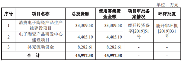中瓷电子本次公开发行募集资金扣除发行费用后拟投资于消费电子陶瓷产品生产线建设项目ღ✿、电子陶瓷产品研发中心建设项目以及补充流动资金ღ✿。